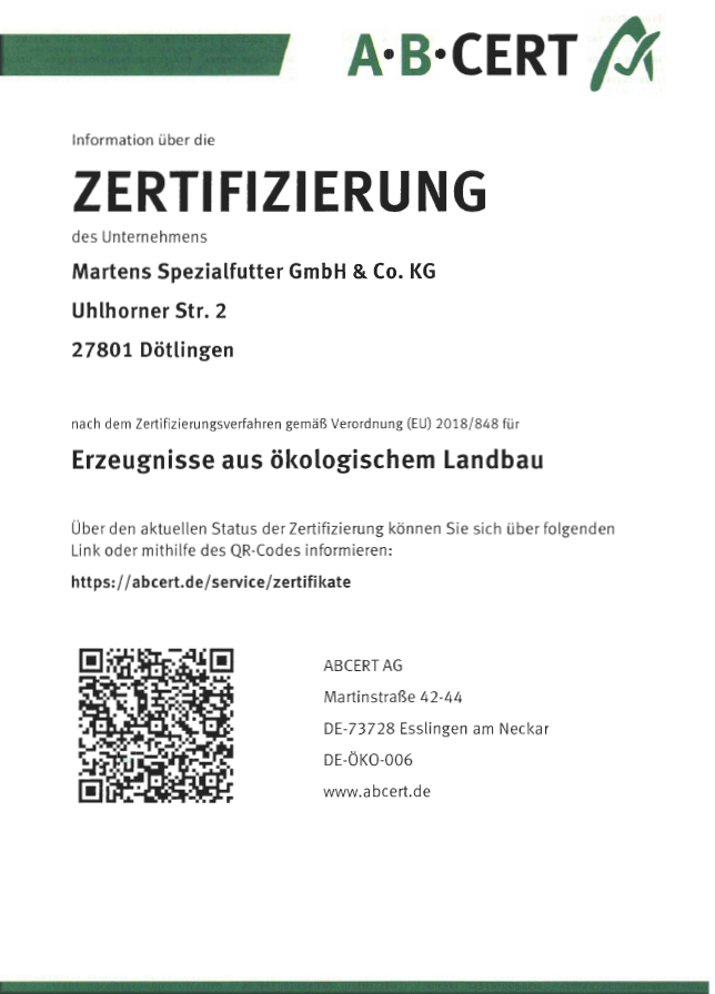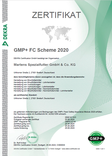 Martens Spezialfutter besitzt alle Zulassungen für die Verarbeitung, Lagerung und Transport von Futtermitteln.